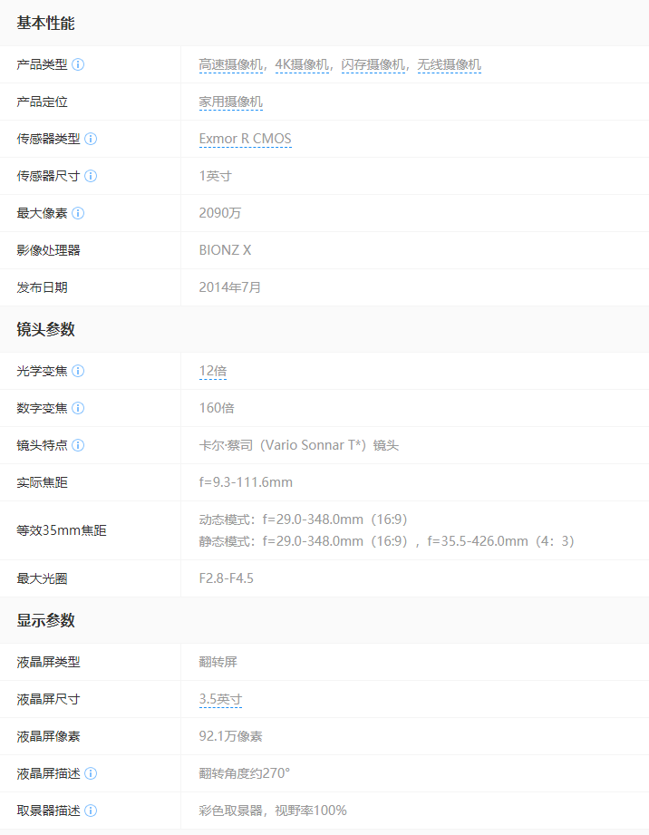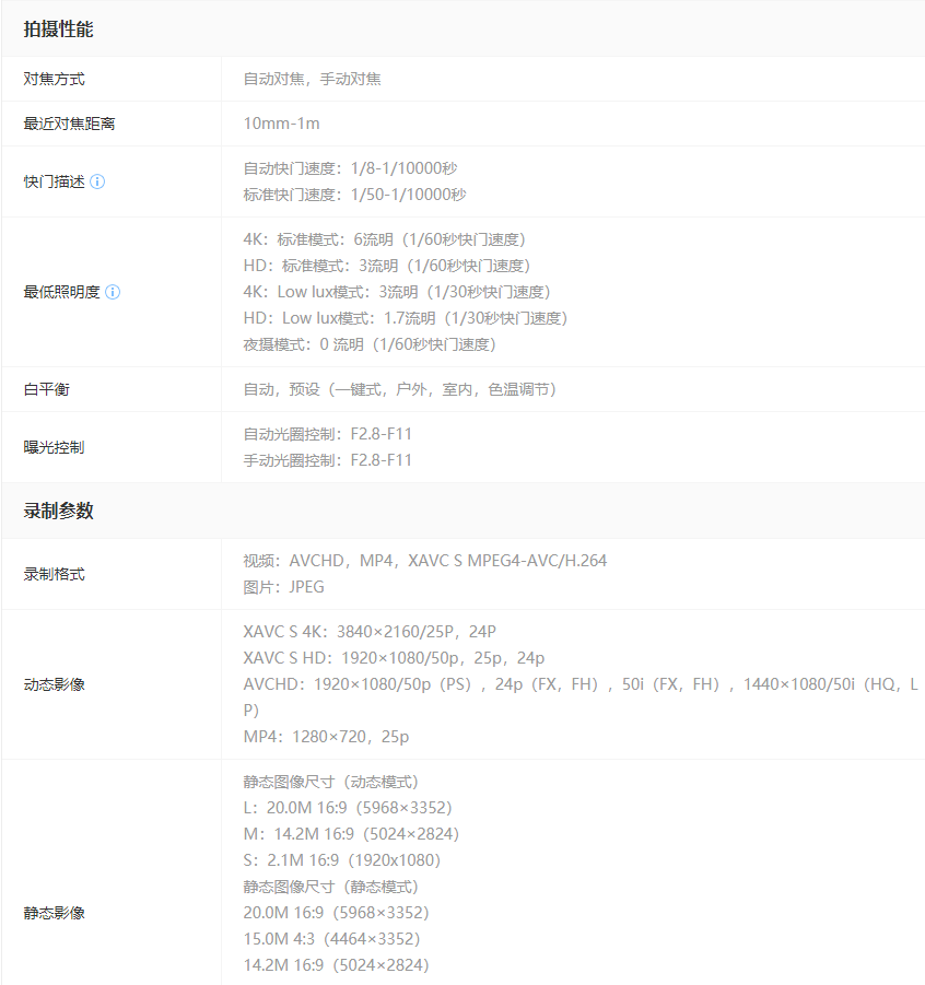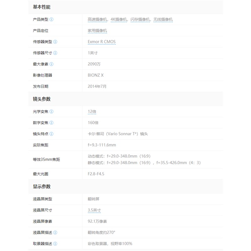 索尼 AX100E 攝像機(jī) 81*83*196.5 翻轉(zhuǎn)屏